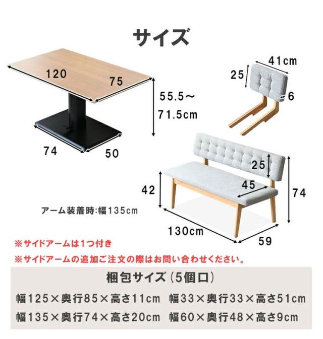 4点セット/テーブル+ベンチ2脚+サイドアーム