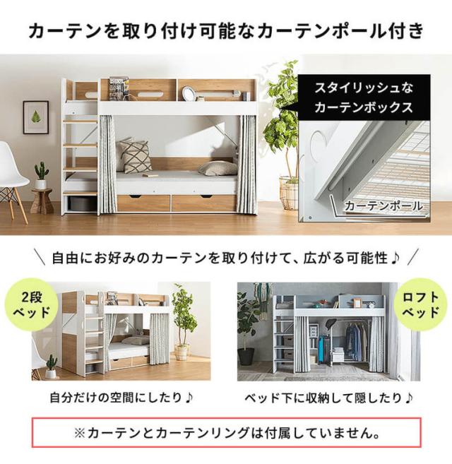 お子様の成長に合わせて2段ベッド⇔ロフトベッドへ組み替えられる機能性抜群なベッドです。