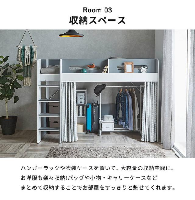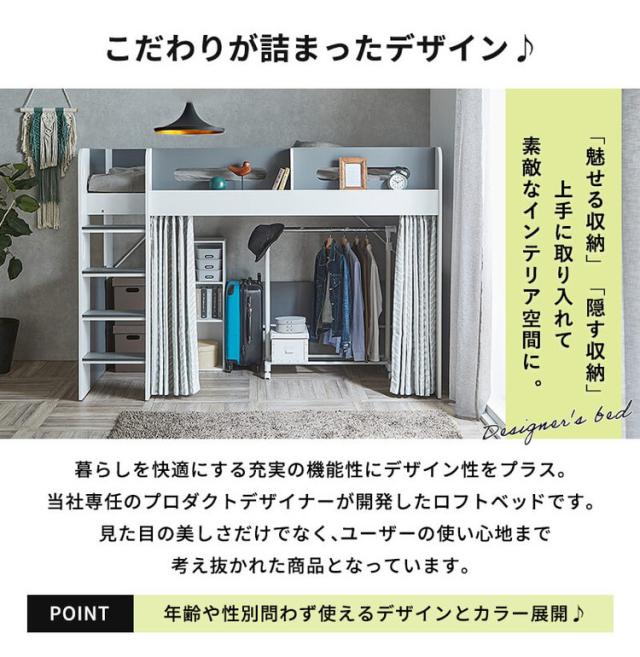 ロフトベッド シングル ハイタイプ 宮付き 収納付き 木製 ベッド下収納 子供部屋 システムベッド 収納 ロフト ベッドフレーム 子供 キッズ 一人暮らし 寮 ゲストハウス 民泊 階段付き(代引不可)【送料無料】