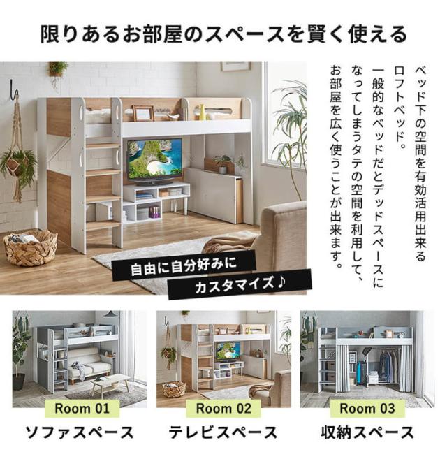 ロフトベッド | ロフトベッド 階段付き | ロフトベッド ディスプレイ棚付き | ロフトベッド ブックシェルフ付き |