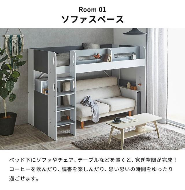 ロフトベッド ディスプレイ棚付き