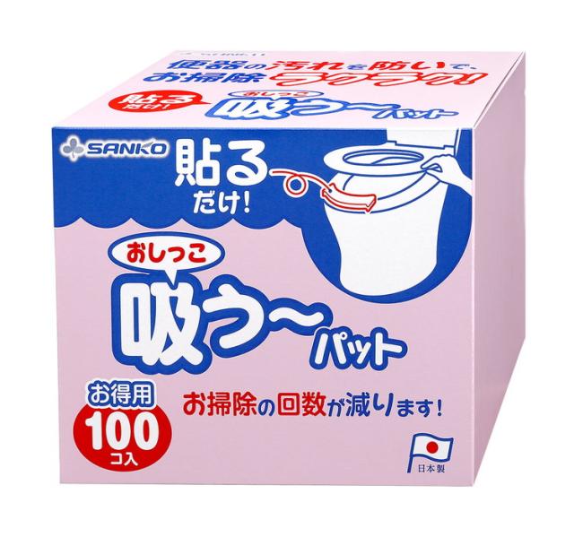 サンコー おしっこ吸う~パット 100コ入 トイレ 便器 汚れ防止 飛び散り防止 吸い取りパッド 尿取りパッド トイレ用品 厚手 使い捨て 日本製 国産【送料無料】