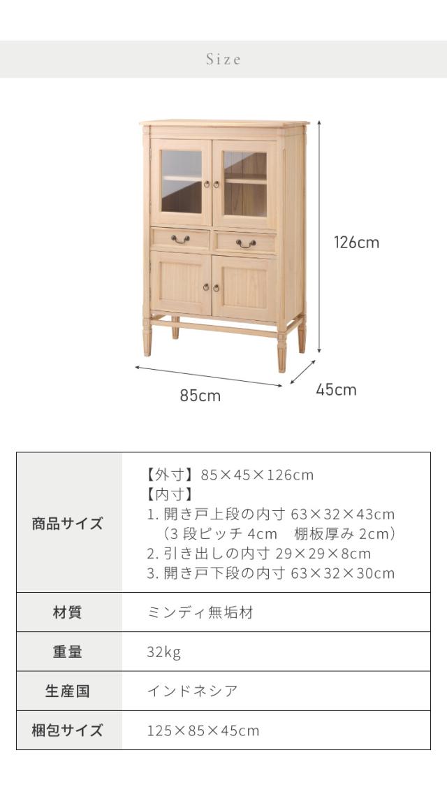 キャビネット 幅85cm 完成品 ハイキャビネット 木製 棚 収納 チェスト リビングボード ナチュラル ミンディ 無垢材 大容量 インテリア おしゃれ 北欧 リビング ダイニング 収納家具(代引不可)【送料無料】