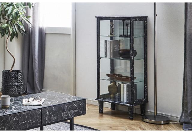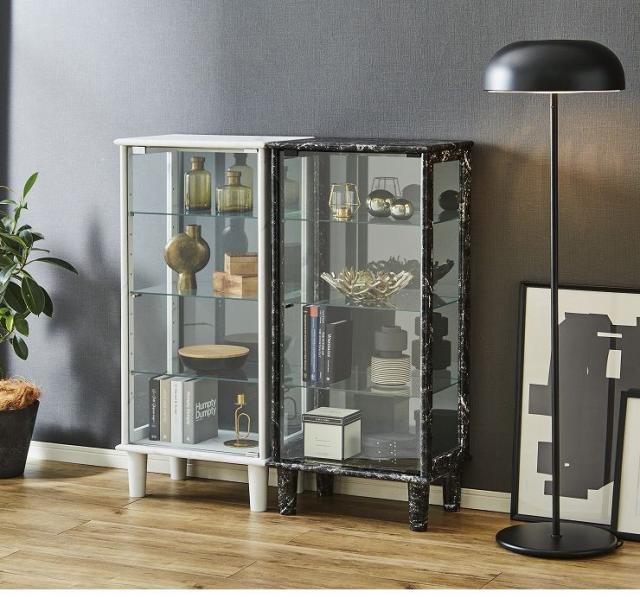 ヨーク50 コレクションラック コレクションケース 幅50 奥行35 高115 石目調 完成品 大理石風 ホワイト 白 ブラック(代引不可)【送料無料