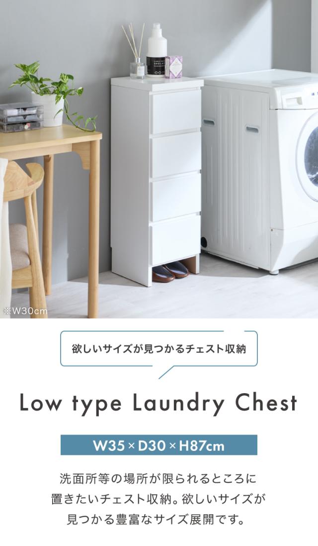 ランドリー収納 完成品 国産 幅35cm 薄型 ロータイプ 収納 隙間収納 ランドリーラック ストッパー付き引き出し オープン棚板 耐震ダボ チェスト 省スペース 隙間 大川家具(代引不可)【送料無料】