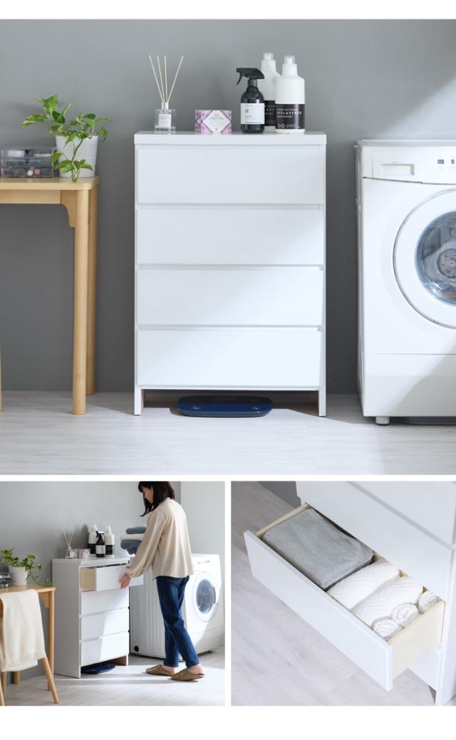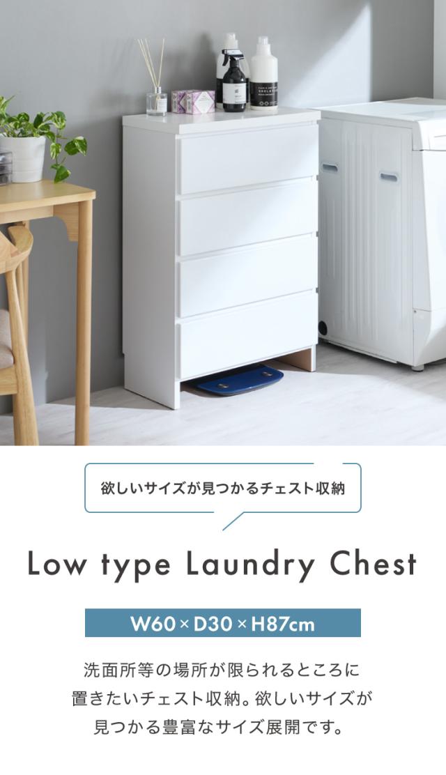 ランドリー収納 完成品 国産 幅60cm 薄型 ロータイプ 収納 隙間収納 ランドリーラック ストッパー付き引き出し オープン棚板 耐震ダボ チェスト 省スペース 隙間 大川家具(代引不可)【送料無料】