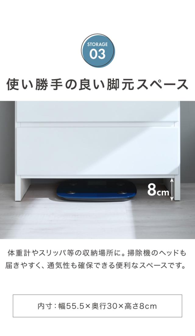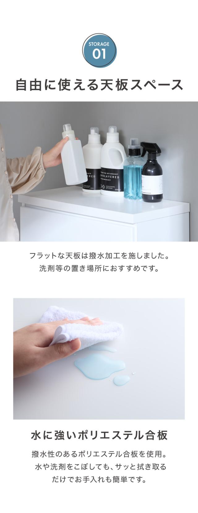 ・脱衣所や廊下など狭い空間で活躍する薄型ロータイプのランドリー収納です。