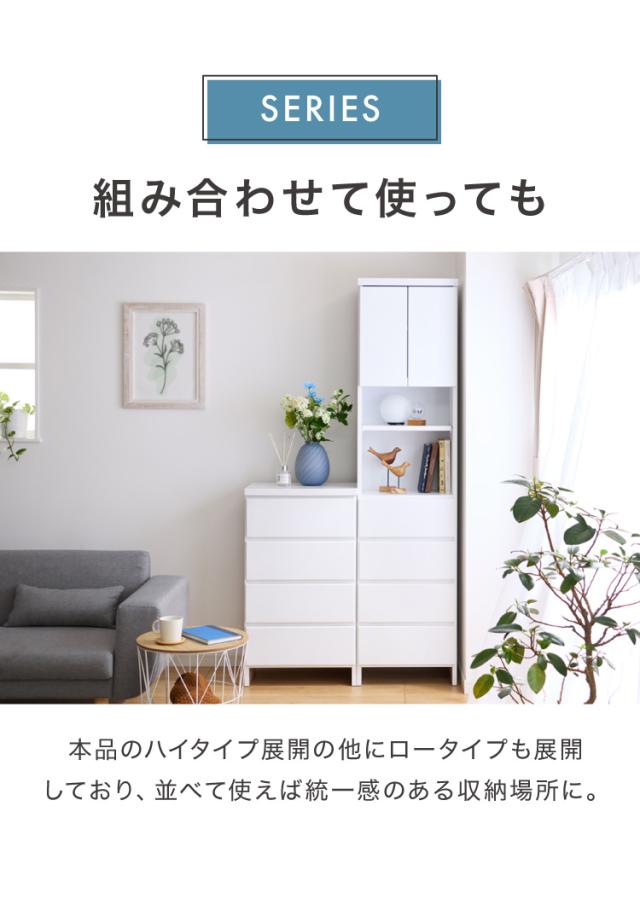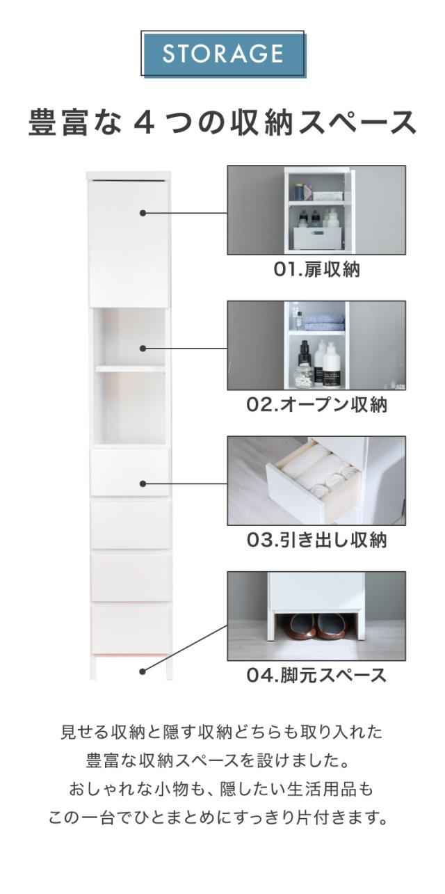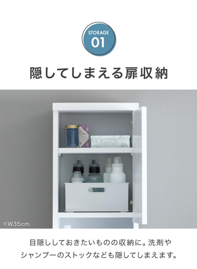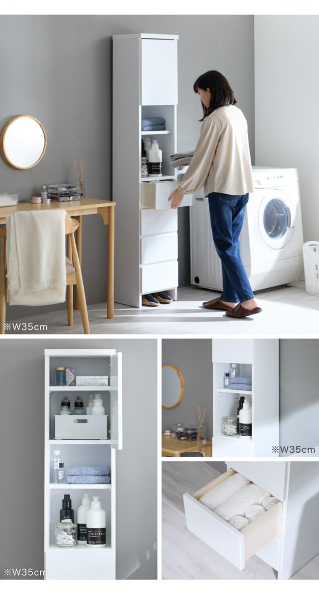 ・脱衣所や廊下など狭い空間で活躍する薄型ハイタイプのランドリー収納です。