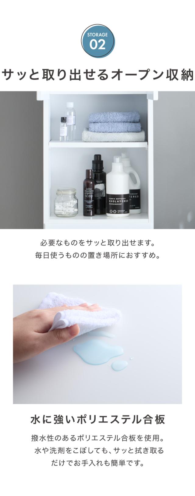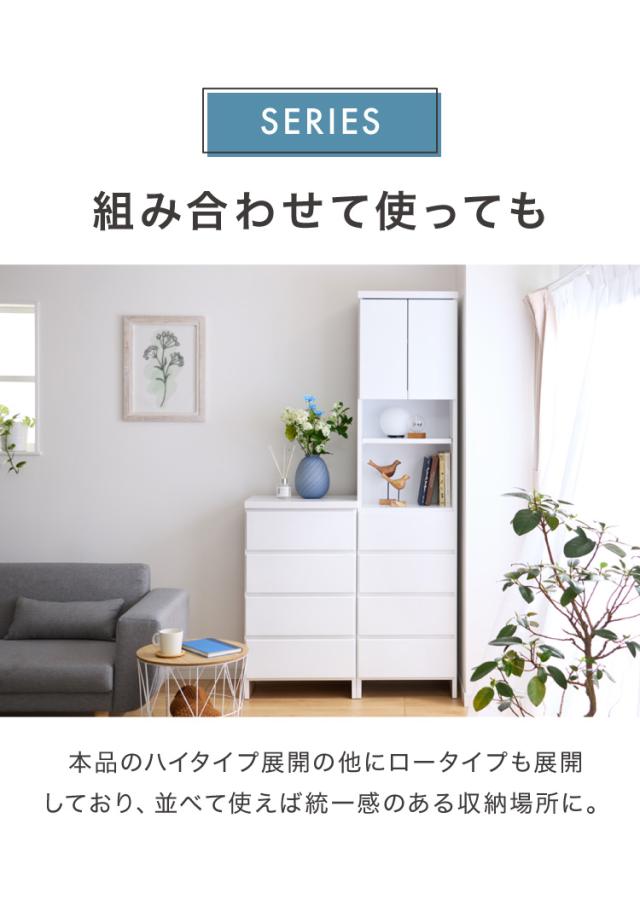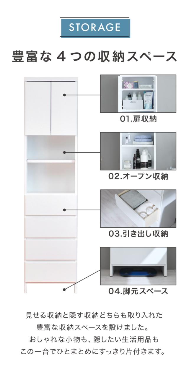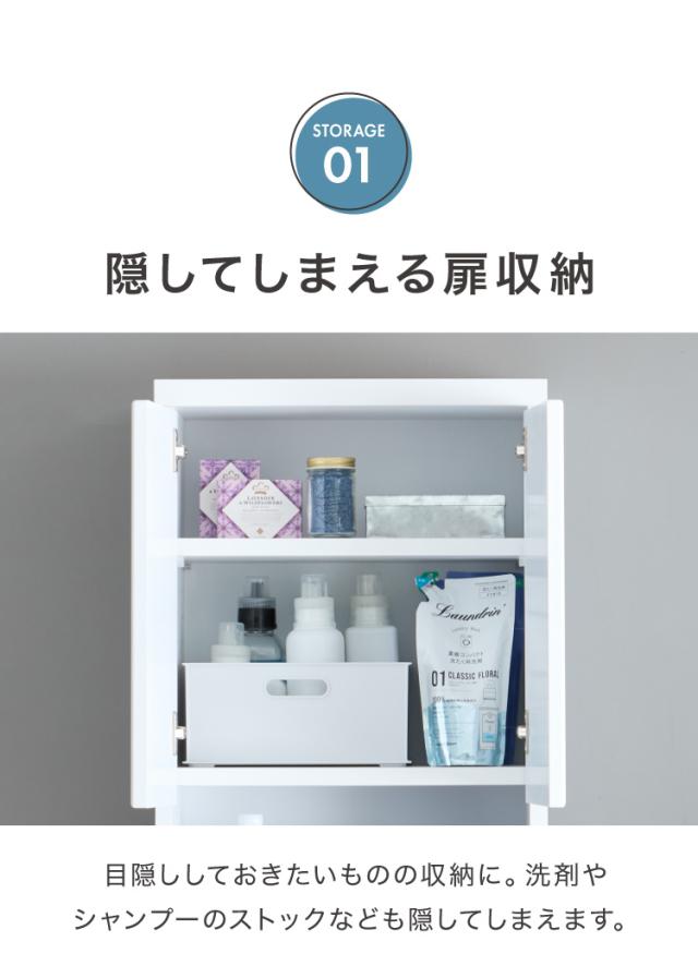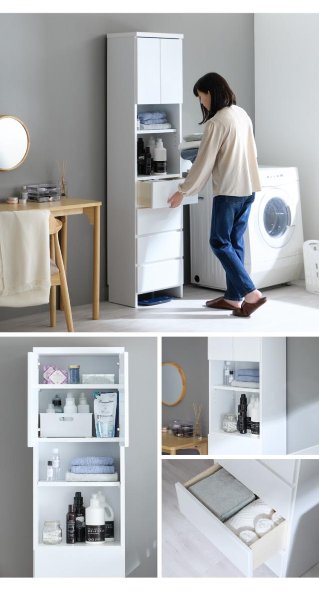 ・脱衣所や廊下など狭い空間で活躍する薄型ハイタイプのランドリー収納です。