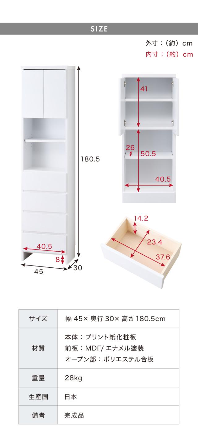 ランドリー収納 完成品 国産 幅45cm 薄型 ハイタイプ 収納 隙間収納 ランドリーラック ストッパー付き引き出し オープン棚板 耐震ダボ チェスト 省スペース 隙間 大川家具(代引不可)【送料無料】