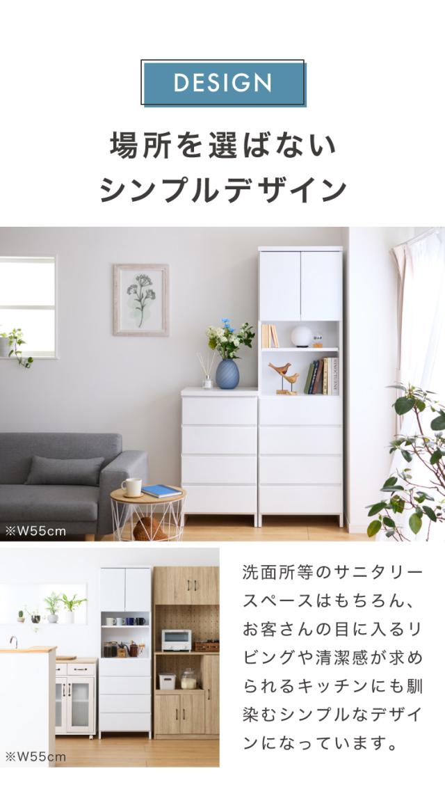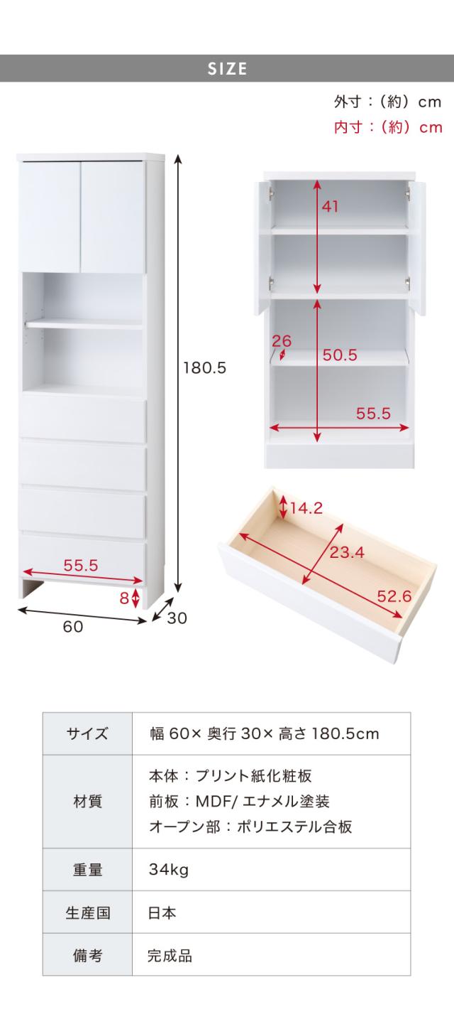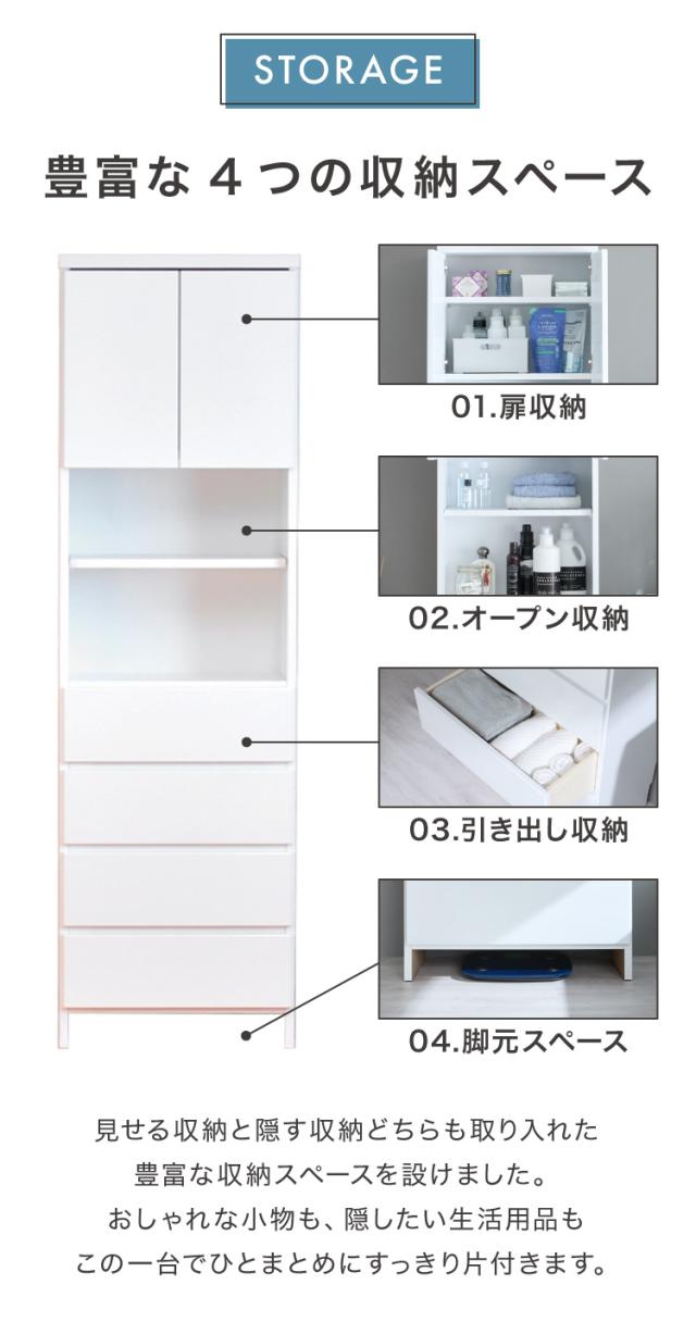 ランドリー収納 完成品 国産 幅60cm 薄型 ハイタイプ 収納 隙間収納 ランドリーラック ストッパー付き引き出し オープン棚板 耐震ダボ チェスト 省スペース 隙間 大川家具(代引不可)【送料無料】