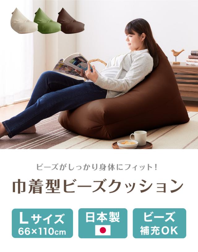 日本製 巾着型 ビーズクッション L 幅66cm 奥行き110cm 高さ55cm クッション ビーズ かわいい シンプル ごろ寝(代引不可)【送料無料】