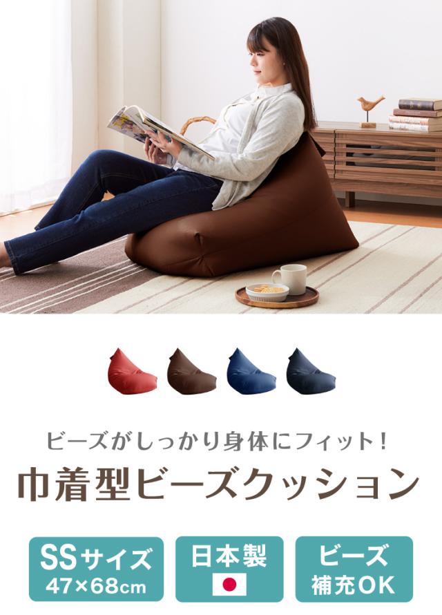 日本製 巾着型 ビーズクッション SS 幅47cm 奥行き68cm 高さ43cm クッション ビーズ かわいい シンプル 無地 ミニ 特小 おしゃれ 北欧 コンパクト(代引不可)【送料無料】