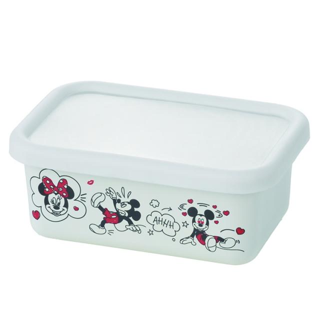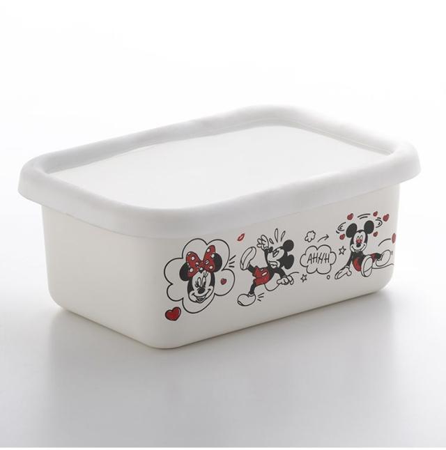 コミカルでラブラブなミッキーとミニー!ラブラブなミッキーとミニーがコミカルなタッチで描かれた「Shake hands」シリーズ。ハートがたくさんでとってもキュートです。ほうろうは酸に強くてにおい移りの心配が少ないので、常備食の保存にも最適です。角型タイプなので積み重ねたり、横に並べたときもムダなすき間ができにくく収納スペースを有効に使えます。新潟県燕市でホーローの美しい表面にひとつひとつ絵柄を丁寧に手で貼り、仕上げているホーローです。ホーロー(琺瑯)は鉄などの金属の表面にガラス質の釉薬を高温で焼きつけたものです。色が移らず、雑菌が繁殖しにくいので衛生的にお使いいただけます。