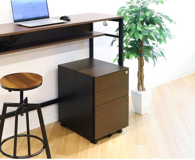デスクワゴン 3段 シリンダー錠 木目 サイドワゴン 脇机 サイドキャビネット スチールワゴン ワゴン おしゃれ A3 A4 鍵 会社 完成品 EFG2-S3-C オフィス デスクワーク 仕事 デスク(代引不可)【送