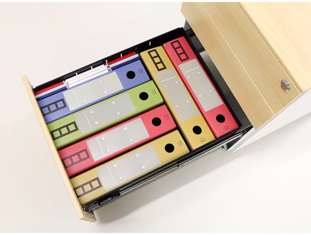 引き出しを1段開くと、その段以外がロックされる転倒防止機能を搭載。前倒れや指の挟み込みを防ぎます。