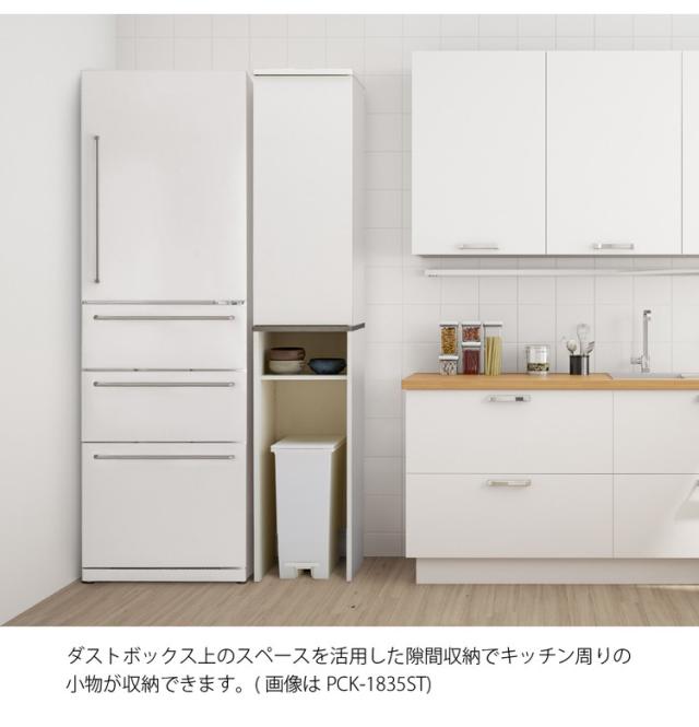 ダストボックス上の棚はダストボックスの高さにあわせて移動可能。