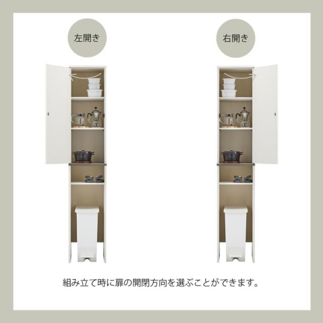 上部の扉は設置場所に合わせて左右選んで組立可能。