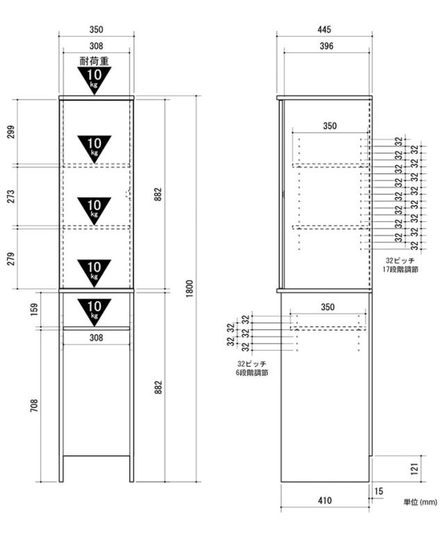 W 350 x D 445 x H 1,800