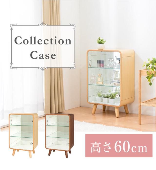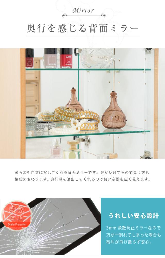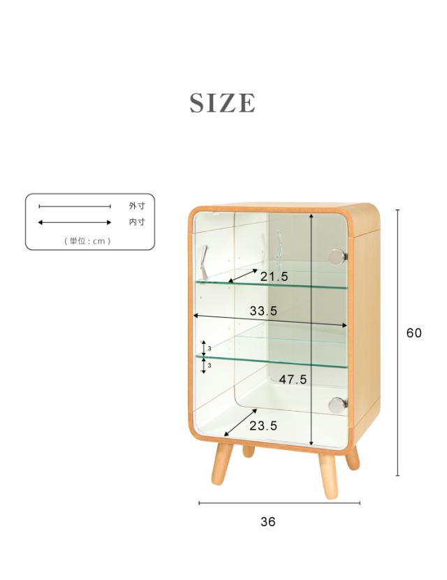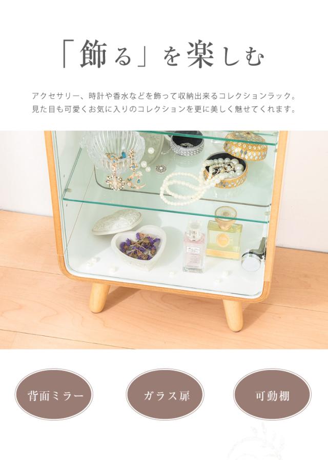コレクションケース 幅36cm 高さ60cm ガラスショーケース ディスプレイラック 収納 おしゃれ 木製 背面ミラー かわいい 北欧(代引不可)【