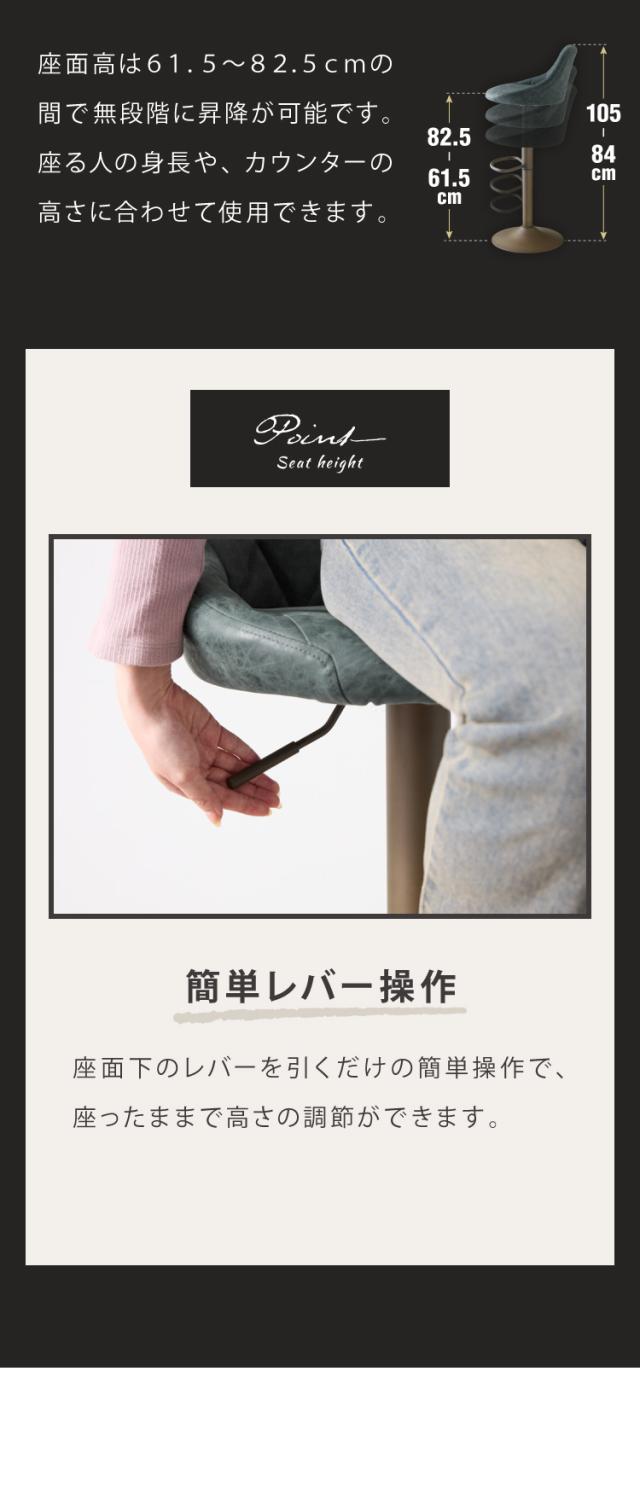 ヴィンテージモダン昇降式カウンターチェア 単品