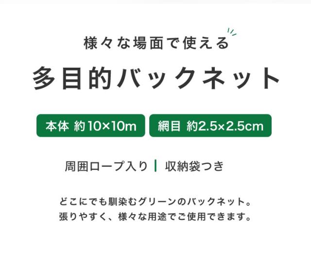 バックネット 野球 10×10m 網目2.5cm グリーン 防球ネット ネット 保護用ネット 多目的ネット ゴルフネットバッティングネット カラスよけ ゴミネット カーゴネット グリーンネット テニス サッカー【送料無料】