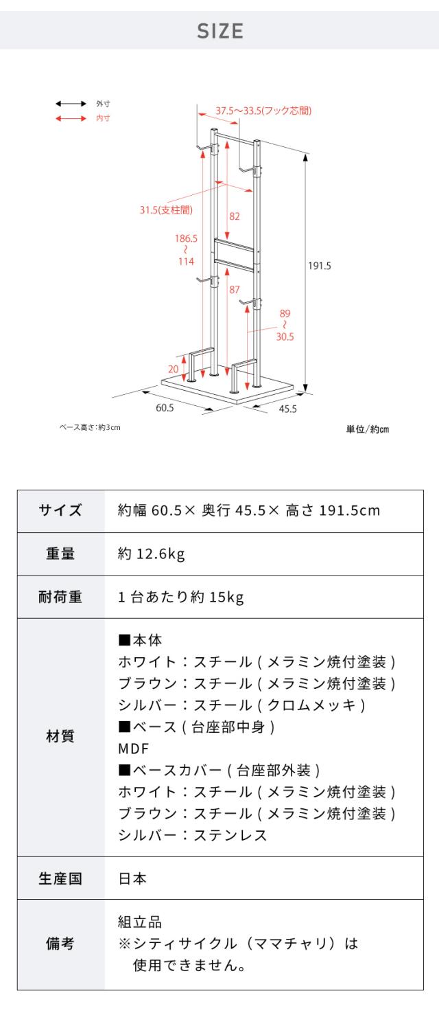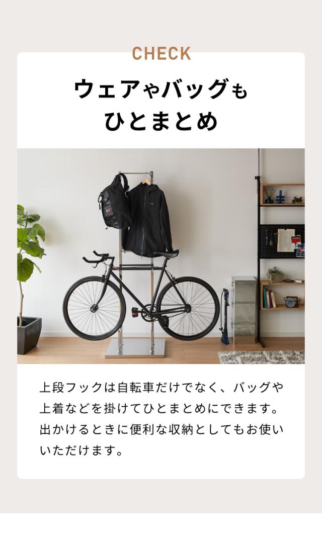 自転車だけでなく、上段のフックにバッグや上着などを掛けてひとまとめにすることもできます。