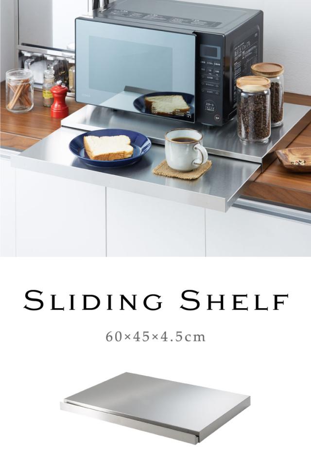 用途:レンジ、トースター、炊飯器などのキッチン家電の下に置くだけ。スライドトー、スライドテーブルとして、キッチンラックのスペース拡大に。