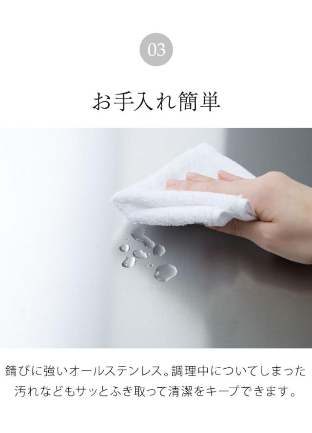 材質は、サビに強く、汚れてもお手入れ簡単なステンレス製。