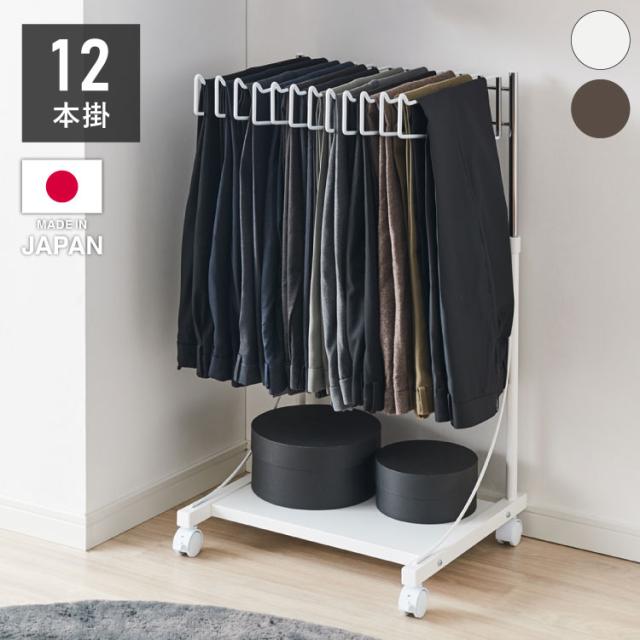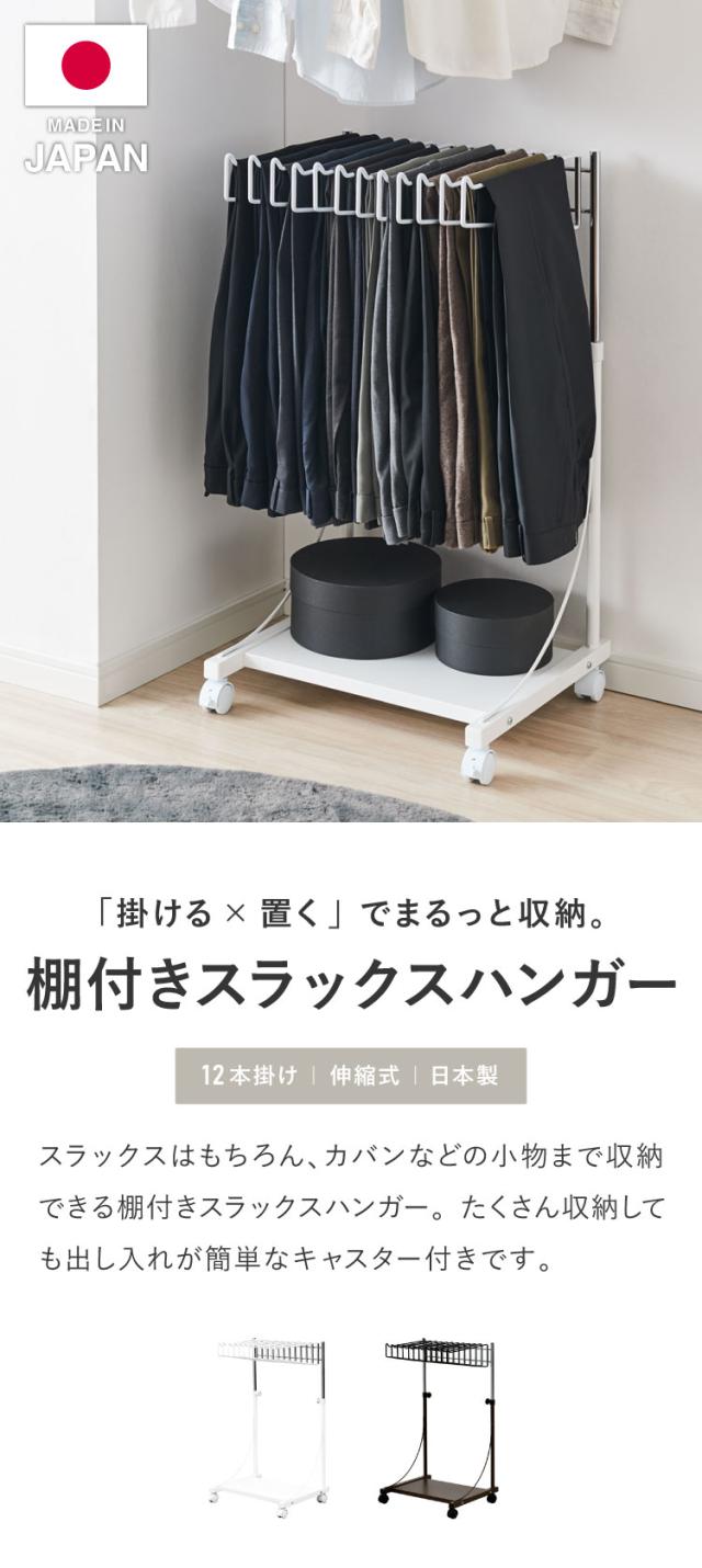 日本製 棚付き高さ伸縮 スラックスハンガー 12本掛け 大容量 頑丈 キャスター付き スイング式 ボトムスハンガー パンツハンガー ズボンハンガー 衣類収納 クローゼット収納 押し入れ収納 押入れ収納(代引不可)【送料無料】