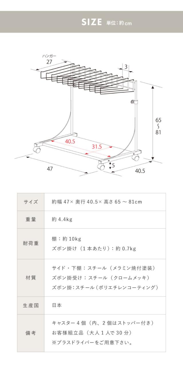 ズボン掛け(1本あたり):約0.7kg