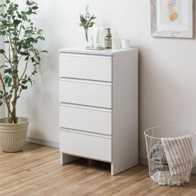 豊富な4段の引き出しは、タオル、衣類、日用品などを分類してたっぷり収納でき、お部屋をすっきりと見せます。