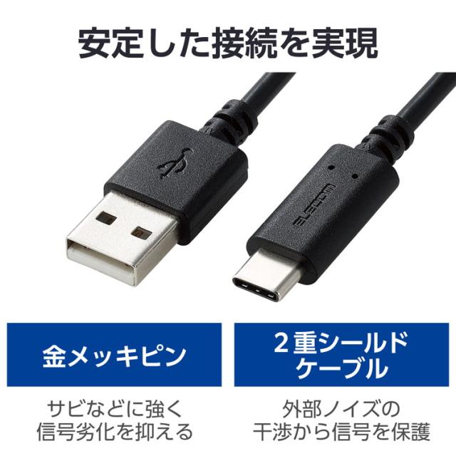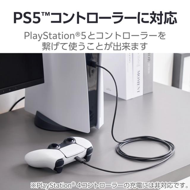 PS5 / PS4 用 USB A to C ケーブル USB2.0 2m 【 USB-C ポート搭載 コントローラー 外付け HDD SSD 等対応 】 転送 充電ケーブル ブラック(代引不可)【メール便配送】【送料無料】
