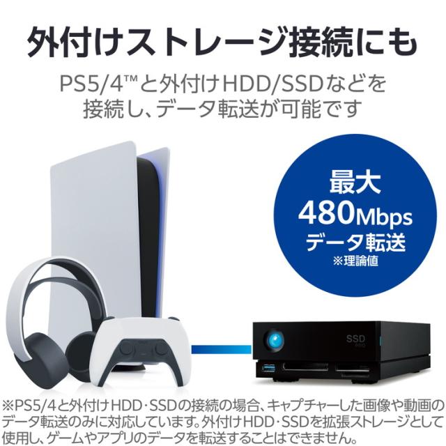 ■※PS5/4(TM)と外付けHDD・SSDを接続する場合は、PS5/4(TM)でキャプチャーした画像や動画のデータ転送のみに対応しています。外付けHDD・SSDを拡張ストレージとして使用し、ゲームやアプリのデータを転送することはできません。