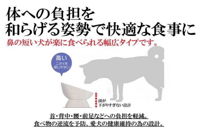 「大阪府立大学 獣医学専攻×スケーター株式会社の共同開発商品」ワンちゃんが楽な姿勢で食べやすい、獣医さんが考えた小型犬種用の陶器製食器。高さがあるので首・背中・腰・前足などへの負担を軽減し、食べ物の逆流などの予防、健康維持のためにもおすすめです。奥側が高くなっているのでフードがこぼれにくく、底がボウル上になっているのでフードが中央に集まって食べやすい。滑り止め・転倒・キズ防止のシリコーンマット付き。
