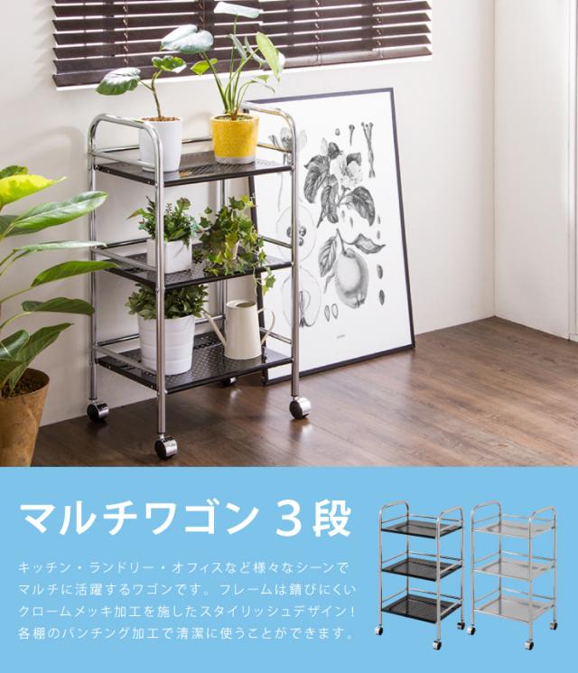 マルチワゴン 3段 キッチンワゴン キッチン収納 台所 食器棚 ラック キッチン キャスター付き キャスター ワゴン レンジワゴン ブラック(代引不可)【送料無料】