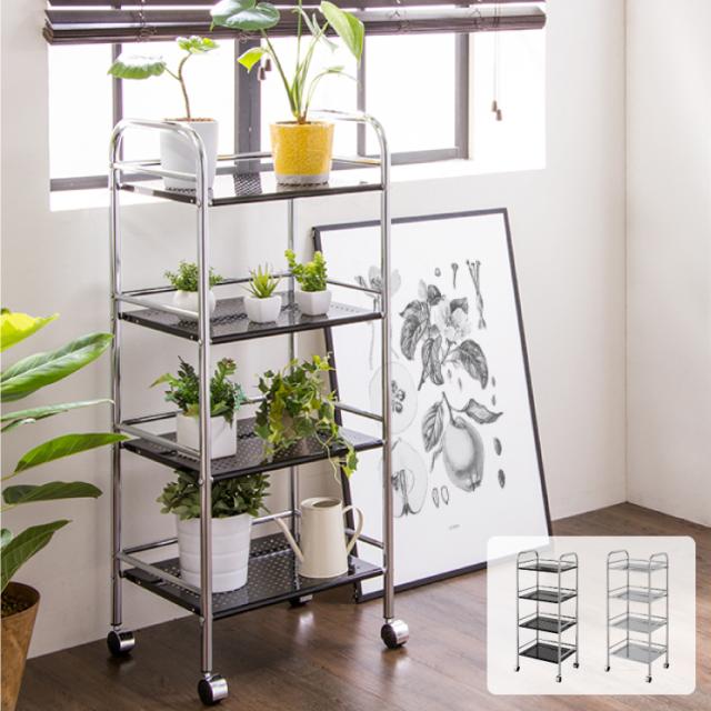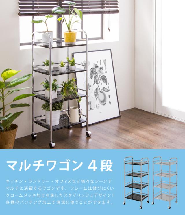 マルチワゴン 4段 キッチンワゴン キッチン収納 台所 食器棚 ラック キッチン キャスター付き キャスター ワゴン レンジワゴン ブラック(代引不可)【送料無料】