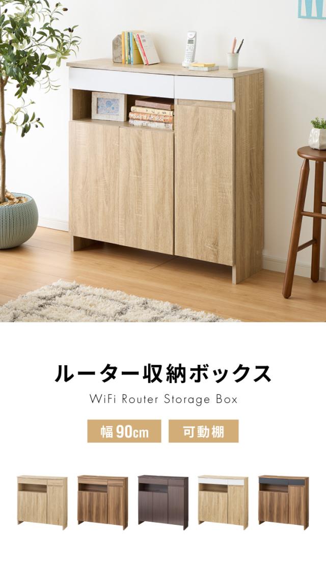 キャビネット 幅90 ルーター収納ボックス 電話台 Wi-Fi ラック スリムタイプ ケーブルボックス FAX台 木製 キャビネット 壁面収納 隙間収納 スリムラック 電源タップ コード収納 タップ収納 配