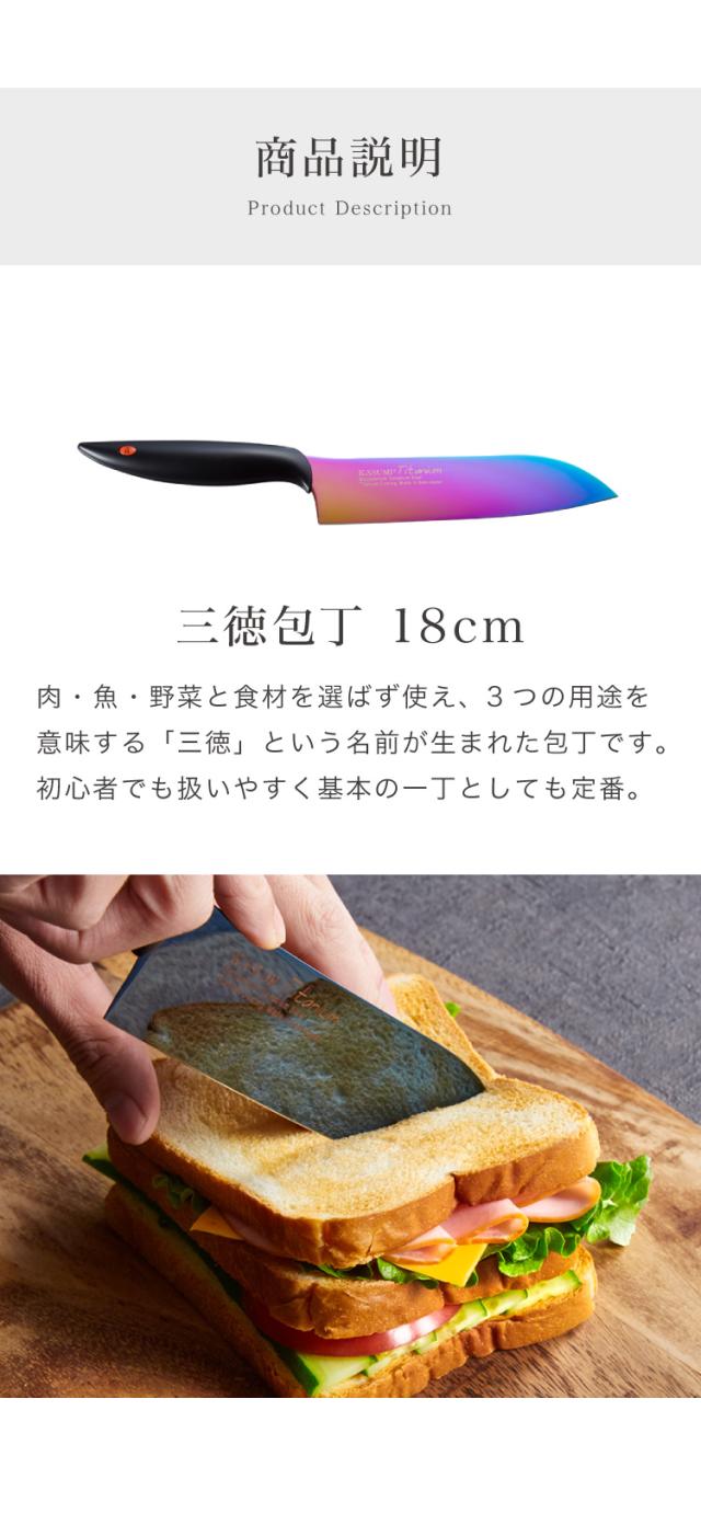 スミカマ 日本製 霞 KASUMI チタニウム 三徳包丁 18cm 青い包丁 関の刃物 職人仕上げ 包丁 ナイフ 万能包丁 キッチンナイフ チタンコーティング 刃物のまち 岐阜県関市 SUMIKAMA【送料無料】
