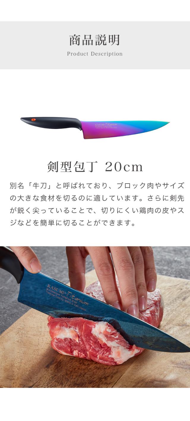 スミカマ 日本製 霞 KASUMI チタニウム 剣型包丁 牛刀 20cm 青い包丁 関の刃物 職人仕上げ 包丁 シェフナイフ キッチンナイフ チタンコーティング 刃物のまち 岐阜県関市 SUMIKAMA【送料無料】