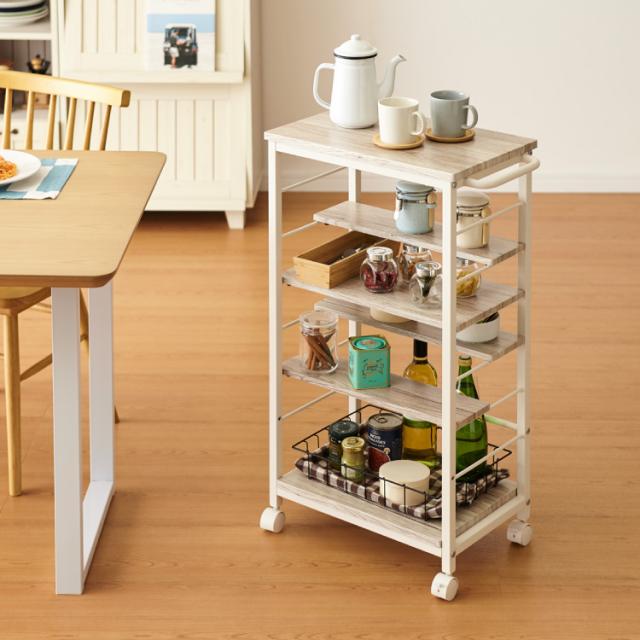 キッチンワゴン 棚位置自在 キャスター付き 高さ85cm 隙間収納 モダン 北欧 おしゃれ ダイニング キッチン リビング 新生活 整理 収納 収納ワゴン マルチワゴン おもちゃ箱 バスケット ラック(代引不可)【送料無料】
