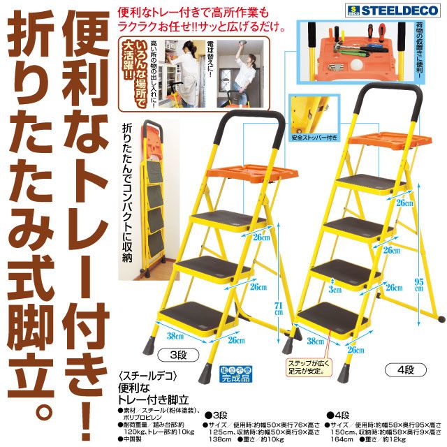 踏み台 脚立 折りたたみ 3段 便利なトレー付き脚立 STEELDECO スチールデコ はしご ステップ 折り畳み コンパクト 完成品 収納 洗車 大掃除 DIY(代引不可)【送料無料】