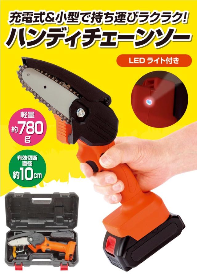 充電式 LEDライト付き ハンディーチェーンソー 予備バッテリー付き 軽量 コードレス ファミラ ハンディチェーンソー ダブルバッテリー チェンソー 有効切断直径10cm パワフル切断 庭 ガーデン 園芸(代引不可)【送料無料】