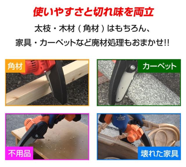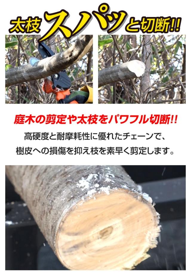 庭木の剪定や太枝をパワフル切断!直径10cmまでの木を切断します。