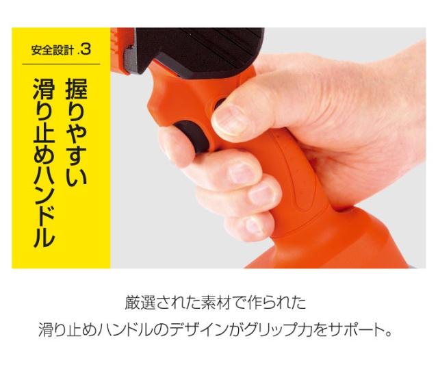 誤作動を防ぐ安心のセーフティーボタン付き。