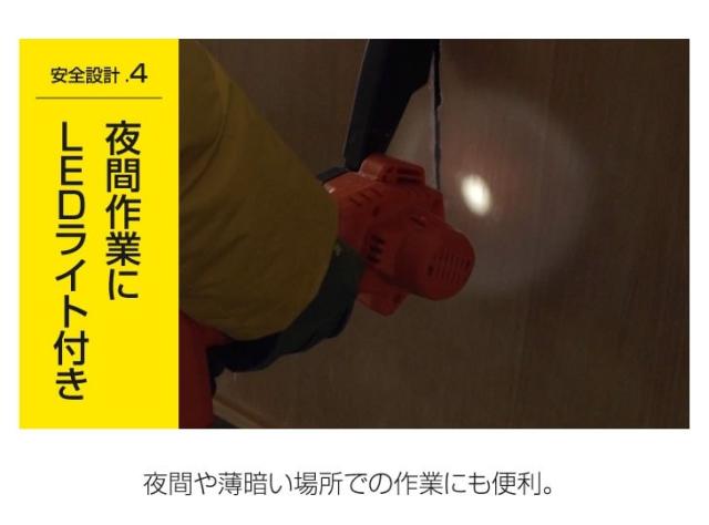 LEDライト付きで、夜間や薄暗い場所での作業もできます。