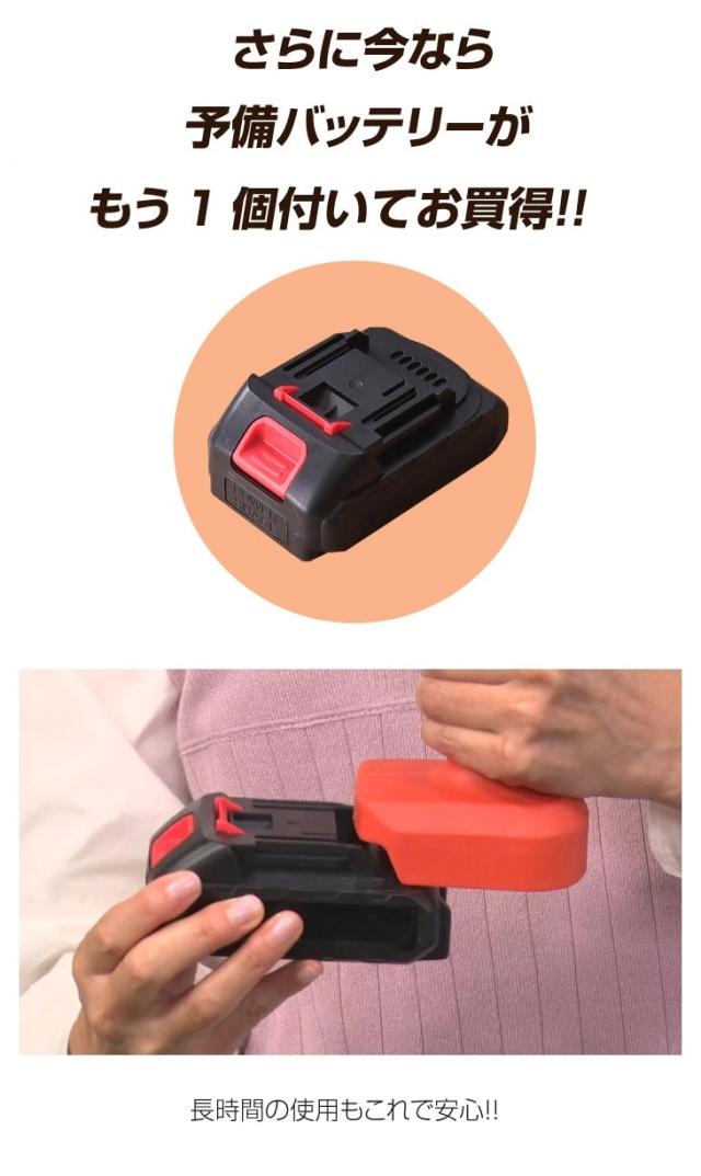 ハンディーチェーンソー 6点セット 予備バッテリー付