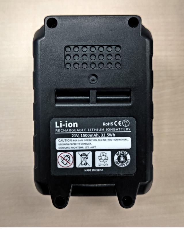 着脱が簡単なスライド式バッテリー、ハイパワー21Vのリチウムバッテリー搭載。