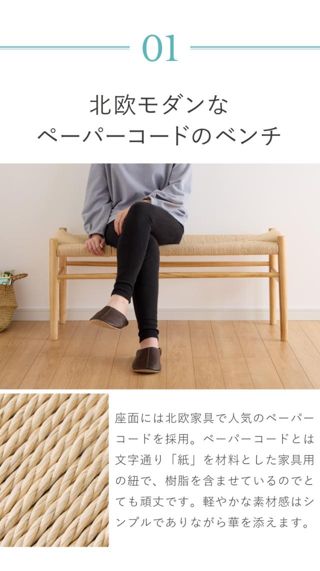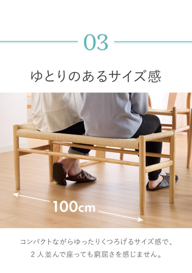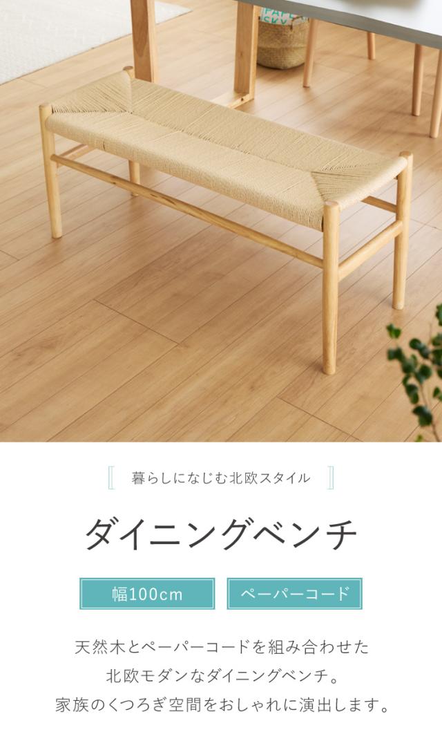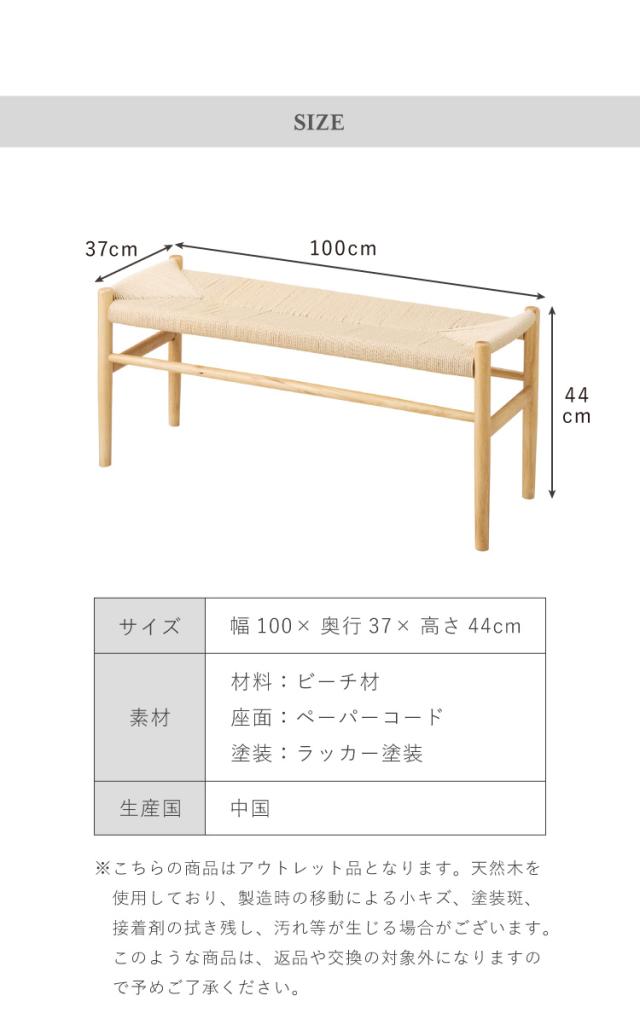 北欧デザインベンチ ノルディックベンチ 幅100 ペーパーコード ピーチ材 アウトレット品 デザインスツール ダイニングベンチ 玄関ベンチ 木製 北欧 椅子 イス チェア おしゃれ(代引不可)【送料無料】