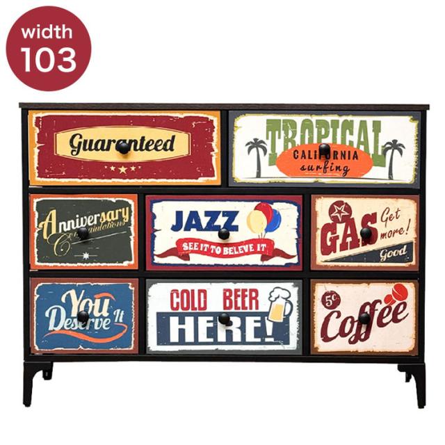 アメリカン チェスト 幅103cm 3段 アンティーク風 ヴィンテージ 棚 収納 収納ボックス アメリカンヴィンテージ ミッドセンチュリーモダン レトロ ブルックリンスタイル 西海岸風(代引不可)【送料無料】